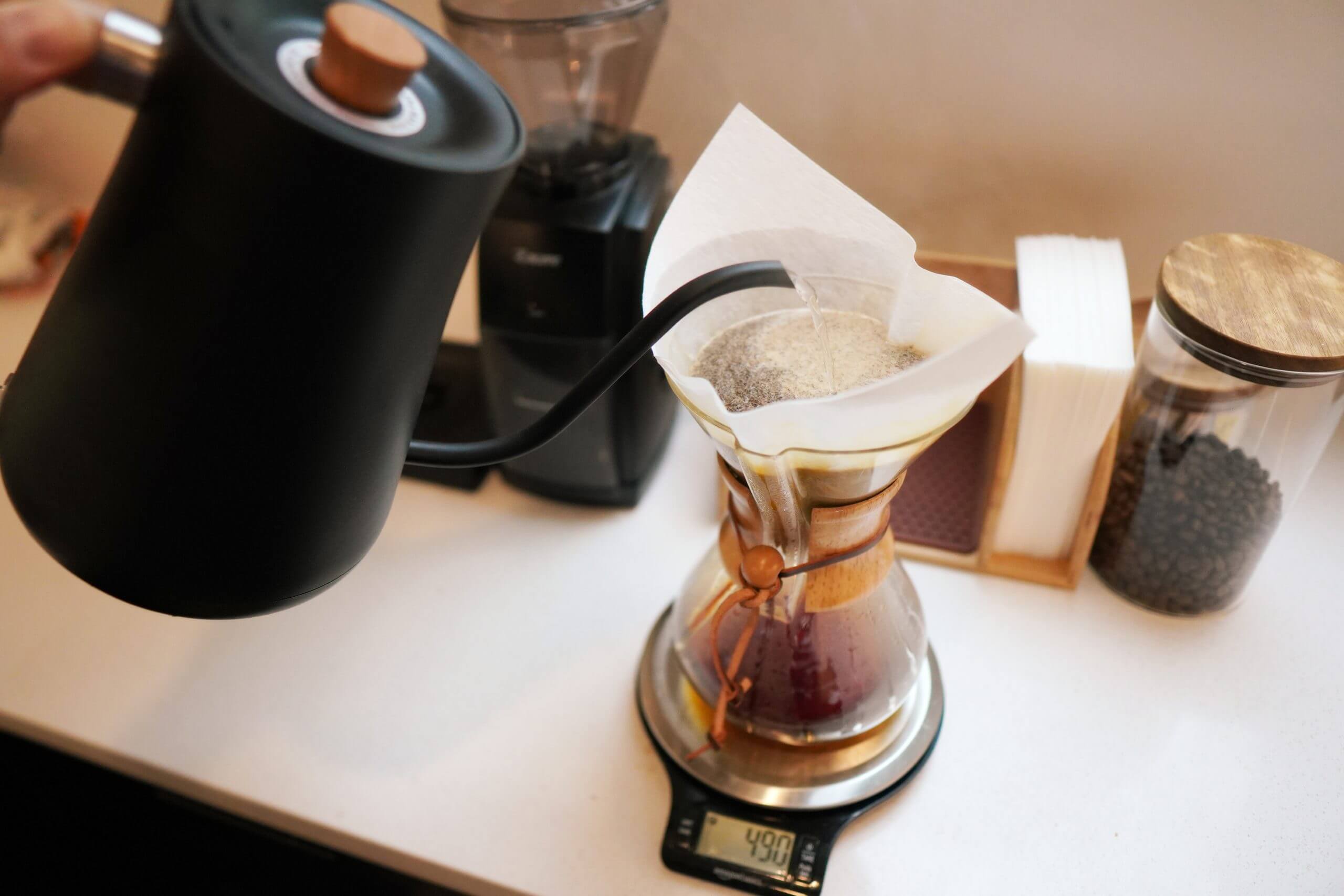 ● Thoughtfully stocked coffee station with a Chemex, French press, AeroPress, and coffee grinder + an assortment of tea bags.