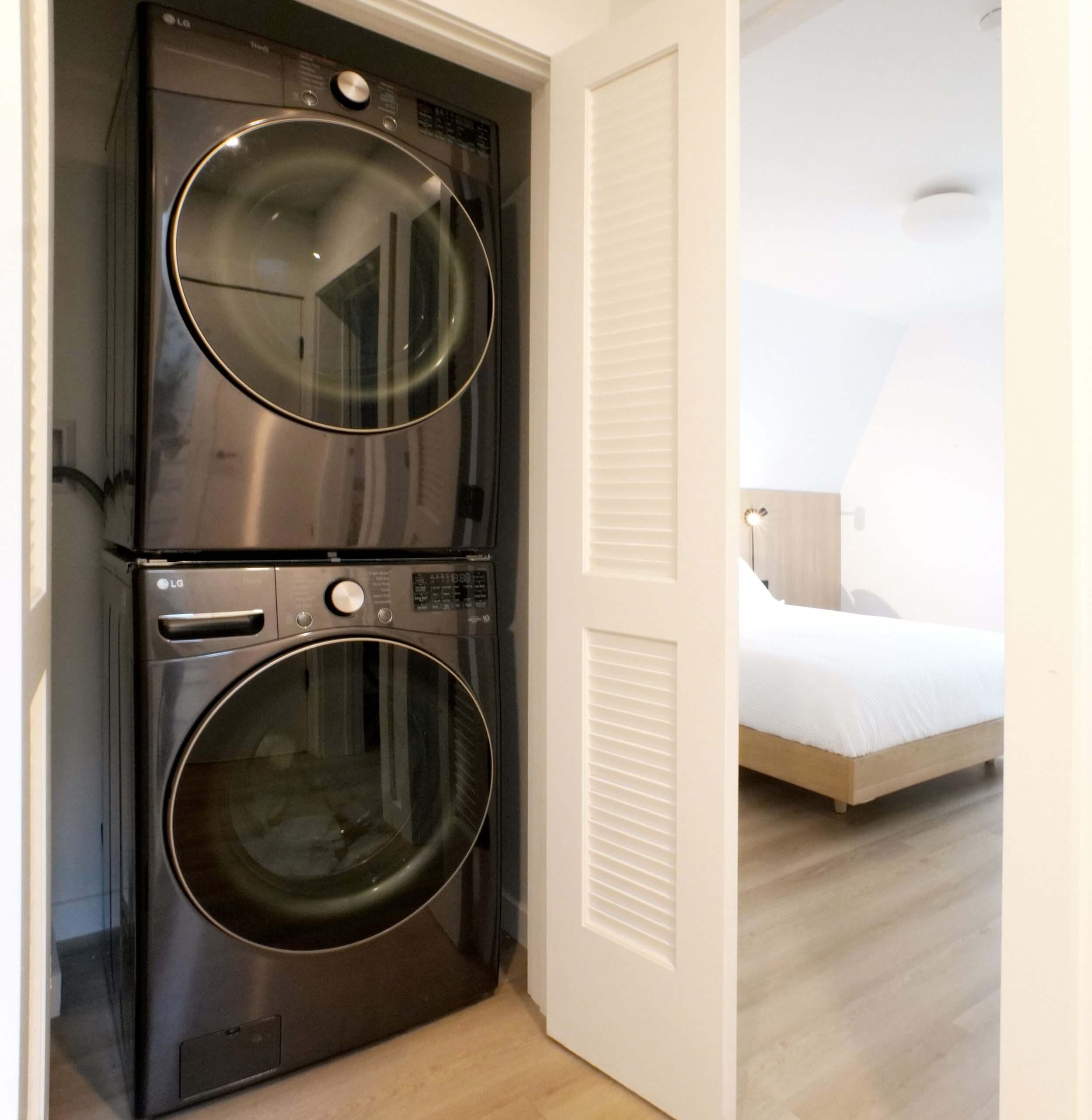 ● Fully equipped kitchen for cooking and baking: induction cooktop & electric oven, dishwasher, fridge, microwave, blender, rice cooker, waffle maker, toaster and electric hand mixer.